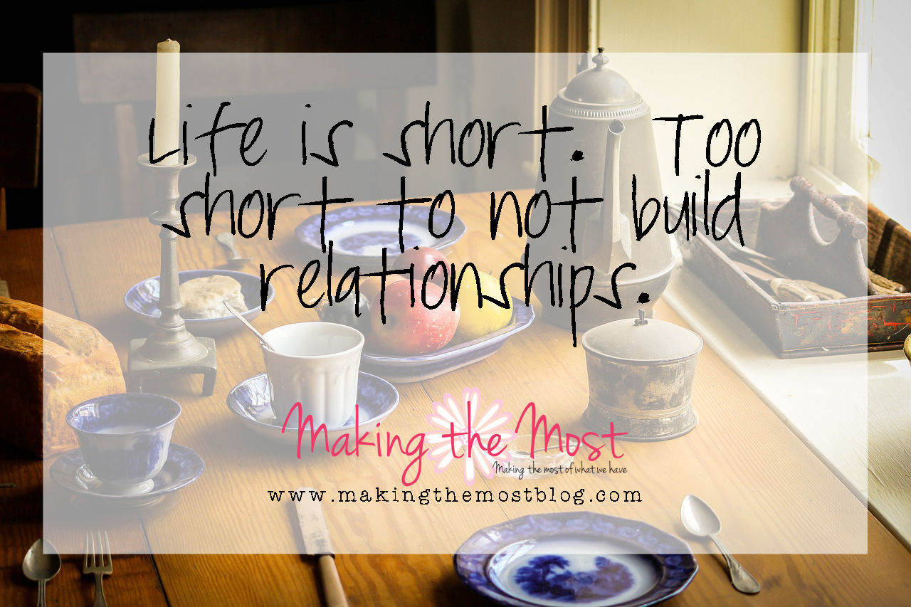 I’ve been thinking recently about how life is short. Too short to not build relationships. How do we do that? Hospitality.