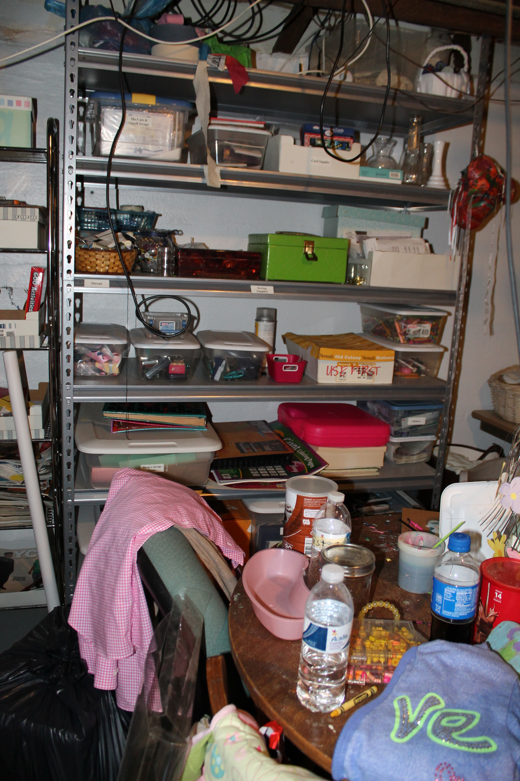Since my sewing machine is broken, making my sewing table essentially useless, I’ve decided to make that portion of the craft/laundry room into my office. (Nothing like a multi-purpose room!)